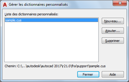 Vous permet de supprimer un fichier de dictionnaire personnalisé de votre liste.