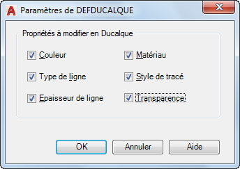 Modifie la valeur de transparence des objets sélectionnés en DuCalque. (SETBYLAYERMODE=128)