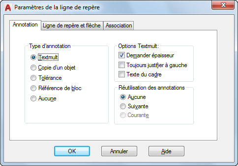 Définit les options de réutilisation d'une annotation de ligne de repère.
