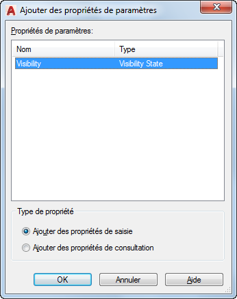 Spécifiez le type de propriété à ajouter dans la table de consultation.