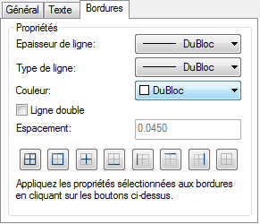 Gère l'aspect des bordures des cellules. Les propriétés de bordure sont l'épaisseur de ligne et la couleur des lignes de grille.