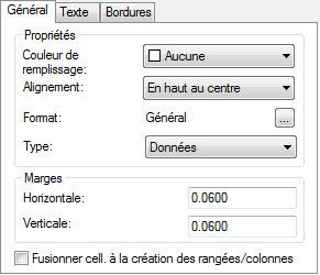 Fusionne en une seule cellule les nouvelles rangées ou colonnes crées avec le style de cellule courant. Vous pouvez utiliser cette option pour créer une rangée de titre au sommet de votre tableau.