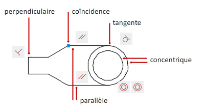 Vous pouvez appliquer des contraintes géométriques afin d'associer des objets géométriques 2D ou encore spécifier un angle ou un emplacement fixe.
