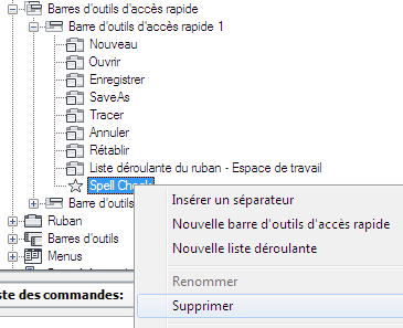 Suppression d'une commande ou d'un contrôle (éditeur Personnaliser l'interface utilisateur)