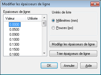 Trie la liste des épaisseurs de ligne par valeur. Si vous modifiez les valeurs des épaisseurs de ligne, choisissez Trier les épaisseurs de ligne pour trier à nouveau la liste.