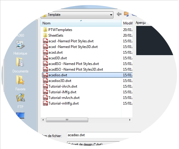 Pour modifier un fichier gabarit de dessin existant, cliquez sur Ouvrir, spécifiez le format Drawing Template (*.dwt) dans la boîte de dialogue Sélectionner un fichier, puis sélectionnez le fichier gabarit.
