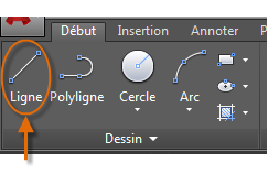 La ligne constitue l'élément de base et l'objet le plus courant dans les dessins AutoCAD. Pour dessiner une ligne, cliquez sur l'outil Ligne.