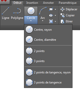 Les autres options de cercle sont disponibles dans la liste déroulante :