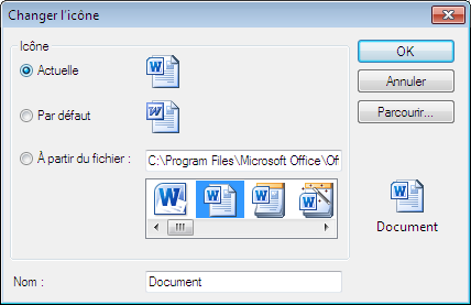 Affiche la boîte de dialogue Parcourir (boîte de dialogue standard de sélection de fichiers), qui permet de sélectionner une icône à partir d'un fichier.