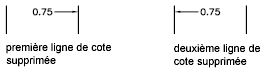 - supprimer la ligne de cote ou, si la ligne de cote est brisée par le texte, l'une ou les deux parties