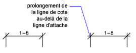 - contrôler la distance par laquelle la ligne de cote se prolonge au-delà des lignes d'attache pour les pointes de flèche de marque architecturale (barre oblique)
