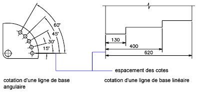 - contrôler l'espacement entre les lignes de cote successives dans les cotes de ligne de base