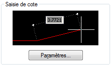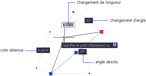 Lorsque vous utilisez les poignées pour modifier un objet, l'info-bulle de saisie de cote peut afficher les informations suivantes :