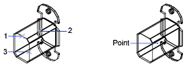L'exemple suivant montre comment utiliser des filtres de coordonnées pour créer un objet point au centre d'un objet 3D. Pour plus de clarté, les lignes masquées ont été supprimées. La valeurX du nouveau point provient du premier emplacement spécifié, la valeurY du deuxième et la valeurZ du troisième. Les trois valeurs sont combinées pour former les valeurs de coordonnées du nouveau point.