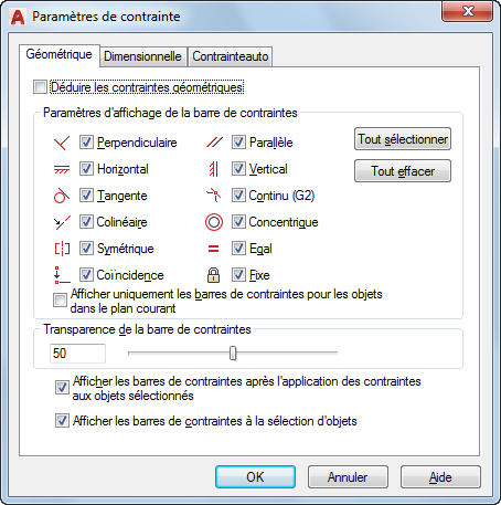 Contrôle l'affichage des contraintes sur les barres de contrainte.