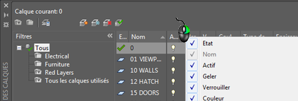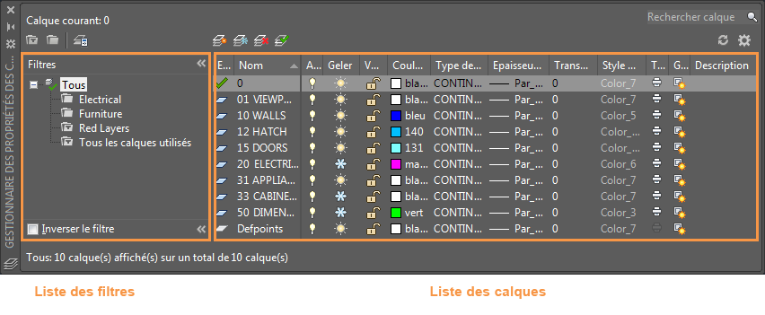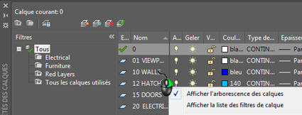 Affiche la liste des filtres de calque présents dans le dessin. Cliquez sur