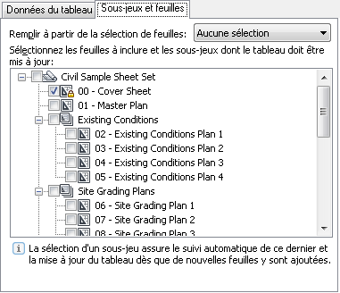 Onglet Sous-jeux et feuilles (boîte de dialogue Tableau des feuilles)