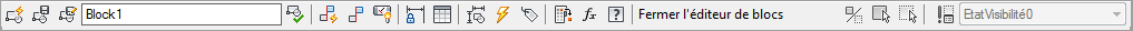 La barre d'outils Editeur de blocs s'affiche lorsque le ruban est inactif. Elle s'affiche également lorsque vous accédez à l'éditeur de bloc alors que le ruban est fermé.