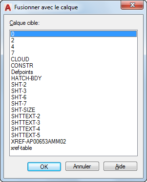 Affiche une liste alphabétique des calques sur lesquels vous pouvez fusionner les calques ou les objets sélectionnés.
