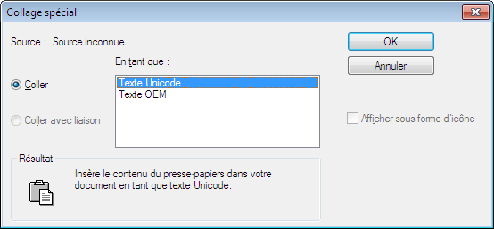 Colle le contenu du Presse-papiers dans le dessin courant. Si l'application source prend en charge une liaison OLE ou de données, un lien est créé avec le fichier d'origine.