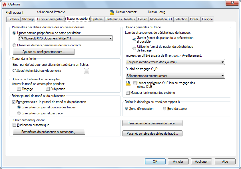 Gère les paramètres de traçage par défaut des nouveaux dessins ou des dessins créés dans AutoCAD Release 14 (ou version antérieure) qui n'ont jamais été enregistrés dans un format AutoCAD 2000 ou ultérieur.