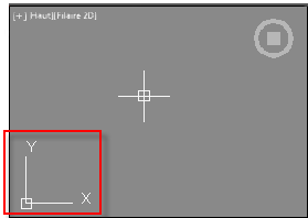 La zone de dessin affiche une icône représentant l'axe XY d'un système de coordonnées rectangulaire, appelé système de coordonnées utilisateur ou SCU.