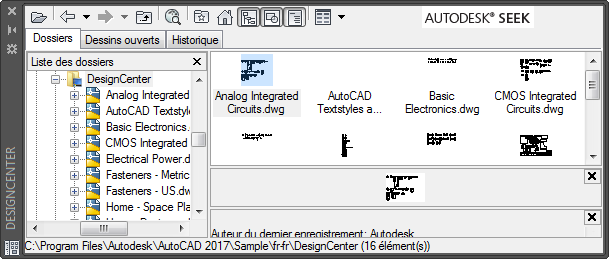 Vous pouvez utiliser NAVIGUERADC pour rechercher un nom de fichier, un emplacement de répertoire ou un chemin de réseau particulier dans l'arborescence DesignCenter.