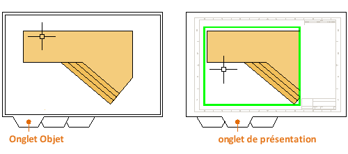 Important : Vous pouvez basculer entre l'espace papier et l'espace objet en cliquant deux fois à l'intérieur ou à l'extérieur de la fenêtre de présentation.