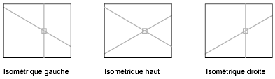 La commande ISOMETR détermine si le réticule se trouve dans le plan isométrique supérieur (angles de 30 et de 150 degrés), dans celui de gauche (90 et 150 degrés) ou dans celui de droite (30 et 90 degrés).