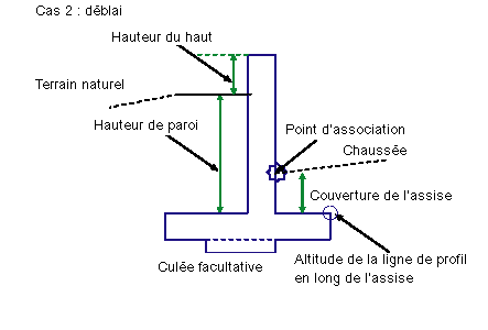 | Hauteur du haut | Distance entre le haut de la paroi et le point d'attache dans le remblai ou le nouveau point d'attache dans le déblai. | Numérique |