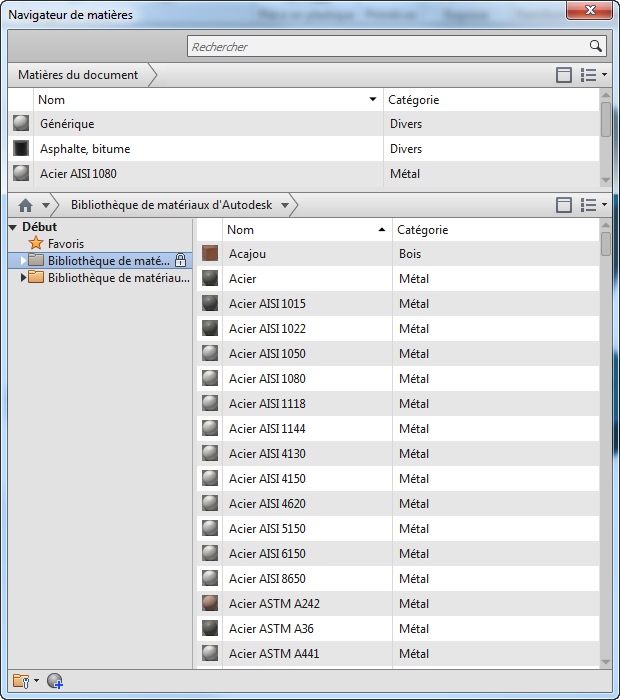 Le gabarit Standard.ipt utilise une matière générique. Si vous n'utilisez qu'une seule matière pour vos produits, vous pouvez modifier le gabarit afin d'utiliser cette matière. Il est déconseillé de stocker toutes vos matières et apparences dans vos gabarits. Stockez-les dans des bibliothèques.
