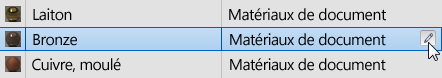 - Dans le navigateur de matières, sélectionnez la matière voulue à l'un des deux emplacements suivants, puis utilisez le contrôle qui s'affiche à droite de la matière :