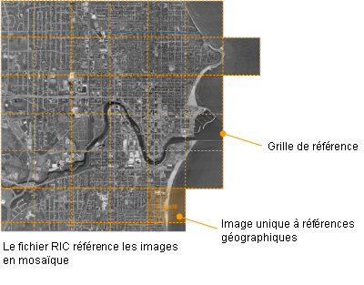 Les fichiers raster (ou d'images) sont des données à base de pixels, comme des photographies numériques, que vous pouvez utiliser comme arrière-plan pour les données d'objet et de dessin. Par exemple, vous pouvez afficher une photographie aérienne d'une ville sous un calque de rues. Les fichiers raster sont regroupés par catalogue afin d'optimiser les performances. Créez un catalogue raster dans le cadre du processus de chargement.