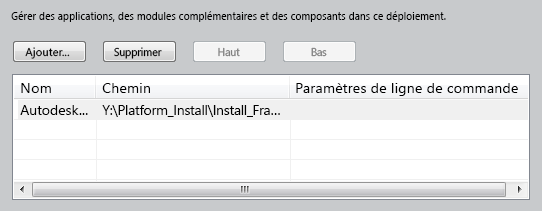 Ce sont généralement des composants Autodesk ou d'autres fournisseurs de logiciels tiers. Certains produits peuvent installer les modules linguistiques de cette manière. Ces logiciels supplémentaires doivent être inclus dans un fichier exécutable auto-extractible (.exe) ou au format .MSI.