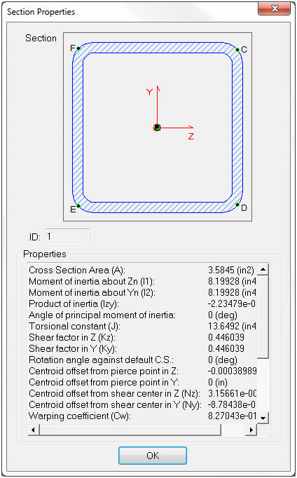 Pour afficher les propriétés de l'élément structurel, cliquez sur le bouton Visualiser les propriétés.
