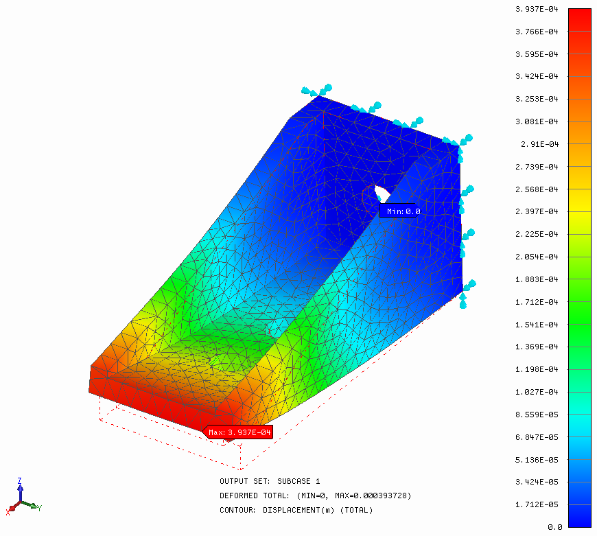 - Cliquez deux fois sur le tracé Déplacement sous Sous-cas 1. Un contour du déplacement total s'affiche ainsi sur la géométrie déformée.