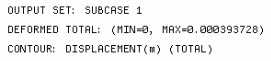 - La deuxième ligne indique les détails du vecteur de déformation. Dans ce cas, il s'agit de la déformation totale (maximum sur 0,0004 m).