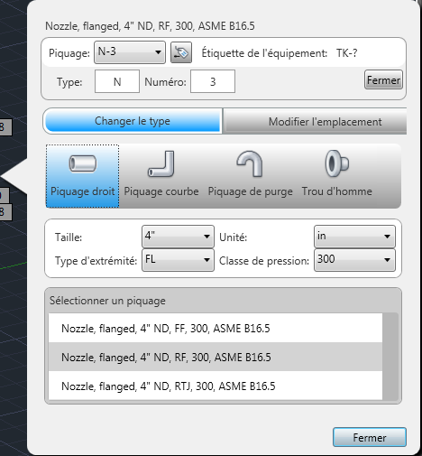 Cliquez sur ce bouton pour filtrer les types de piquages et en sélectionner un dans une liste de piquages appropriés.