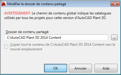 Le dossier de contenu partagé s'applique à l'installation du logiciel AutoCAD Plant 3D.