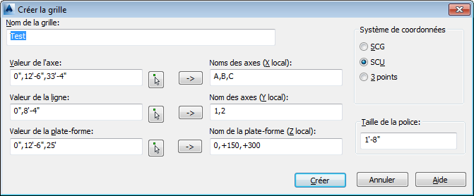 Indique le nom d'axe saisi ou défini par le bouton Choisir des points.