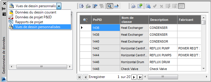 Pour afficher une vue personnalisée du Gestionnaire de données
