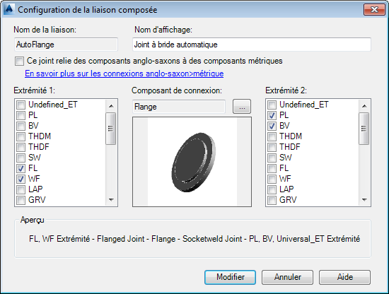 Cochez une case de cette colonne afin d'indiquer que la liaison connecte des composants aux unités anglo-saxonnes (ANSI)/métriques (DIN).