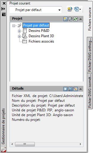 Le point de départ de la gestion des projets est le Gestionnaire de projets. Tous les dessins sont organisés en projets et le projet contrôle tous les éléments, y compris :