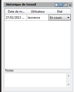 Si la boîte de dialogue Historique de travail ne s'affiche pas lorsque vous ouvrez ou fermez un dessin, cela signifie que l'invite de l'historique de travail est désactivée dans la configuration du projet. Contactez votre administrateur de projet.