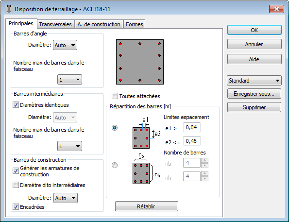 Si l'option Diamètre dito intermédiaires est sélectionnée, le diamètre des barres de construction est le même que celui des barres intermédiaires.