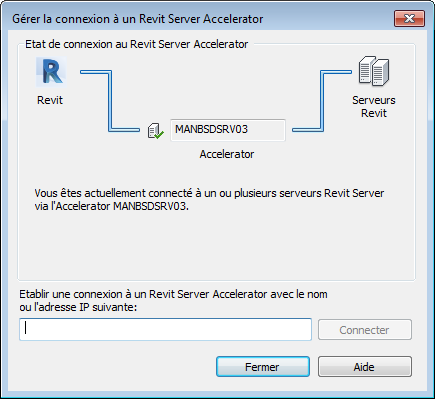 Afin d'améliorer les performances du partage de projet basé sur un serveur, utilisez Revit Server Accelerator pour vous connecter au serveur Revit Server hébergeant le modèle central.