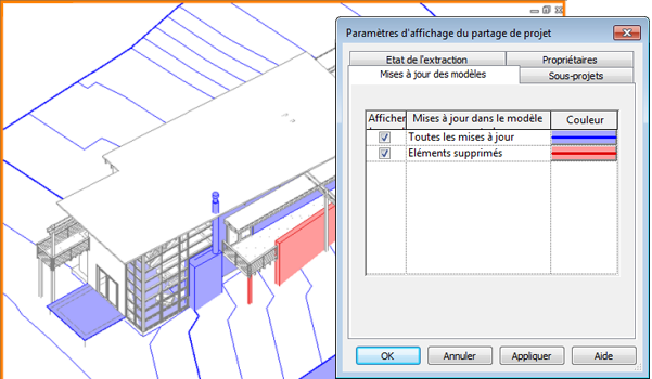 Mises à jour des modèles. Les éléments mis à jour s'affichent visuellement dans le modèle.