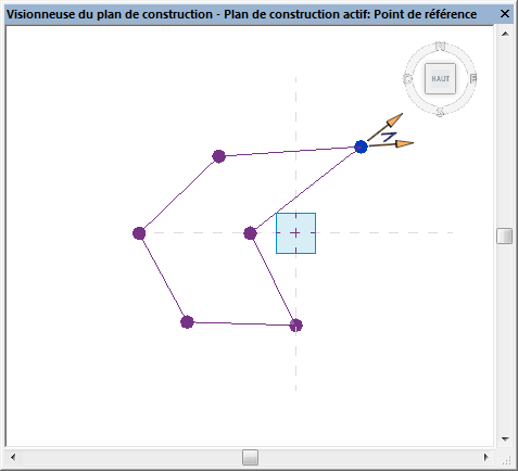La visionneuse du plan de construction est disponible dans toutes les vues de modèle au sein de l'environnement de projet. L'orientation par défaut correspond au plan de construction actif de la dernière vue active.
