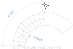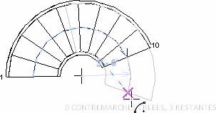 - Déplacez le curseur en sens horaire ou en sens horaire inverse pour définir la direction de la rotation, puis cliquez pour spécifier le point d'arrivée et le nombre total de contremarches.