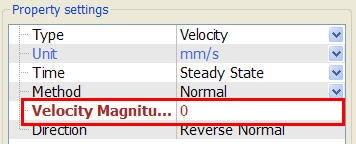 The Materials, Boundary Conditions, Initial Conditions, Manual Meshing, Motion, and Solve dialogs use a Property Table to enter settings.